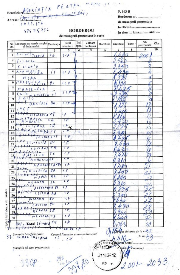 Cum arata casuta la un caz de al nostru, din jud Bacau, cu bebe mic. Cum arata borderou posta, plin de colete, 33 in total, sapt trecuta. Ursuletul de langa usa e trimis de noi, adica de voi!